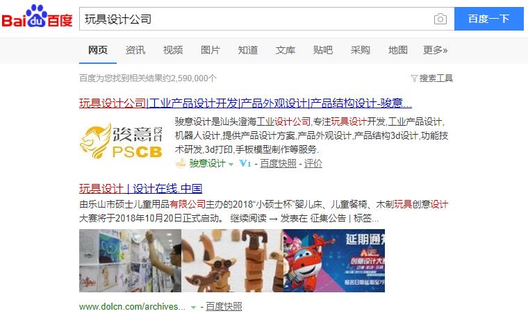 一些客户为了不盲目地选择,采取了网络查询的方法,试图从网络上直接找到答案。比如通过搜索引擎查询“玩具设计公司排名”、“知名玩具设计外包公司”、“玩具产品设计公司哪家好”、“玩具外观设计公司找哪家”等问题找现成答案。